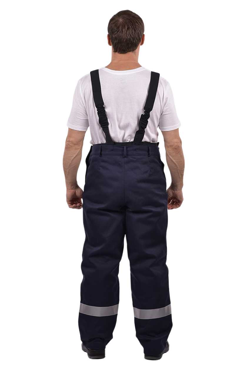 Передние половинки брюк, с усилительными накладками по длине и ширине. По низу брюк огнестойкая СОП.